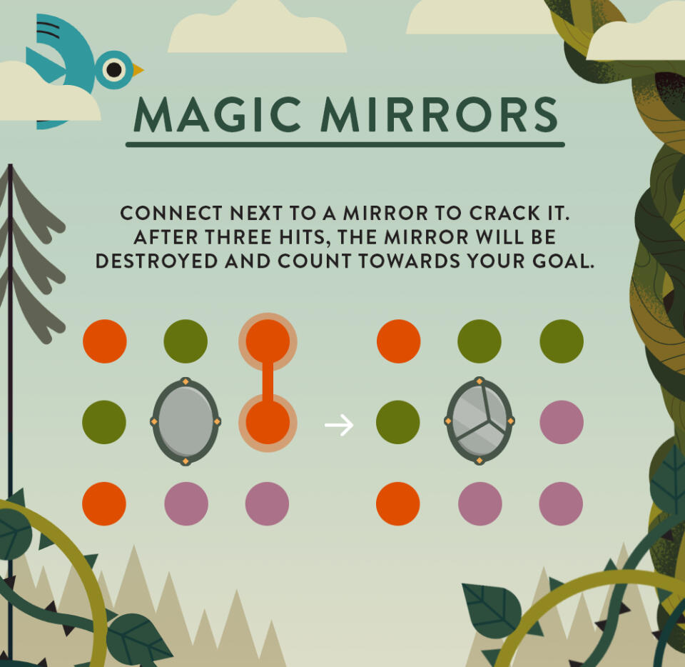 Two Dots is an award-winning mobile puzzle game on both the Google Play Store & Apple App Store. I was one of the core game designers on the game from 2019 to 2023, until ownership of the game changed hands to the studio Socialpoint.As a game designer, I wrote design documents and led the creation of multiple board mechanics for the game, created levels for the various modes within the game, and monitored the game’s balance.Game balance for Two Dots is incredibly delicate. Each mechanic for the game should have a strong and clear reason for its existence and use within a level. This can range from providing a challenging goal like Mirrors, helpful power ups like Potions or interesting ways to manipulate the board, such as Minecarts. I wrote the specs for these mechanics and more, while also leading the development team for each one. My mindset toward leading the team throughout development was aligning everyone towards the design written in my specs, while incorporating their own additions and suggestions to improve in ways I missed.In addition to normal mechanic releases, I also was the main game designer for three mechanics made to be used for a revised FTUE effort for the game - Pinecones, Ropes, and Party Poppers. These mechanics were made to be not only simple to understand and clear, but also satisfying or enjoyable to interact with.Of course, with every mechanic created, I also created and tested plenty of levels to tutorialize them to players, ways to interact with them and showcase their best characteristics. Most of these levels were created for the main Saga map, but I also created plenty of level packs for the secondary mode Treasure Hunt - where 7 levels are created based on a theme and try to tell a consistent story using layouts and mechanics.