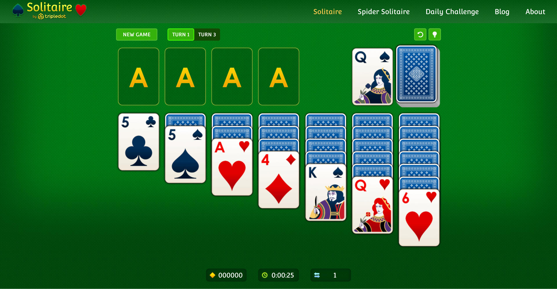 In a collaboration with the studio TripleDot, Arkadium was asked to redesign and build a new version of website Solitaire.com. For release, we were tasked to have a lightweight version of Klondike & Spider Solitaire. In future updates, the website would add features such as daily challenges, skins and other aspects for players to enjoy.I was the primary game designer on this project, writing design documents for both the core rules and features. My goal was to encompass the main consistent features found throughout multiple Solitaire website competitors, embody the common ruleset that players who enjoy Solitaire would understand, while trying to offer a flair only found in TripleDot and Arkadium's titles.With the website, we also wanted to maintain some pairity with TripleDot's mobile apps, so some of the design document work was also based on researching and studying their app design as well.