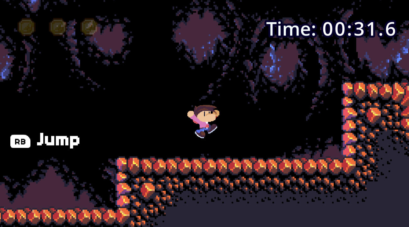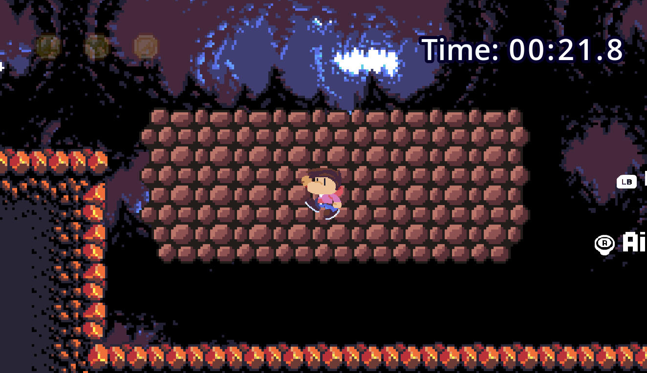 Made for the 2025 Secret Santa Jam, BoulderDash is a short 2D platformer lightly based around bouldering and aimed to be a quick time attack experience. Stuck at the bottom of a cave, your character must climb up and out by grappling on rock walls and jumping to increasing heights. The short game has one level, with a timer for racing against the clock and three coins hidden throughout the level to collect.Due to the game's time being during the holidays, I wanted to keep the mechanic simple and easy to pick up, but something that felt satisfying to really hone and get perfect at. From this and also a slight inspiration from the game DK: King of Swing, I designed the grappling launch mechanic. Minus the assets used from other pack sources, the character art, game design and code for the game were done by myself.